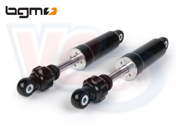 LE00518-BK BGM PRO F16 FRONT DAMPERS -PAIR- BLACK. Shock absorber front -BGM PRO F16- Lambretta LI, LIS, SX, TV, DL, GP bgm front dampers with rebound adjustment. 16 stage adjustment. Designed to use with normal Lambretta springs, Easy fit, direct onto standard damper mounts, no welding or jigging up required. Ideal to use in conjunction with bgm rear dampers. Fit the adjuster screw to the bottom for these dampers.