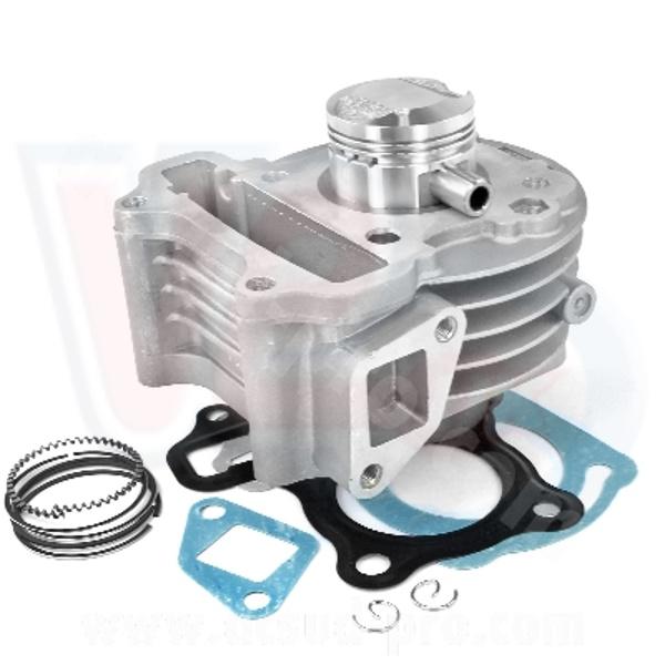 A quality low cost replacement 50cc aluminium cylinder kit with an iron liner, bore size 39mm, it is supplied with piston, rings, pin, circlips and gaskets. NOTE this cylinder kit is only for 50cc 4 stroke scooters that have a 10mm gudgeon pin.