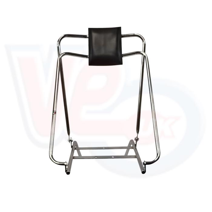 VE30024 FLIPOVER BACKREST - CHROME - VESPA PX. Experience the timeless elegance of the Classic 1980's style chrome flip-over backrest, also known as the Bradford or Bermuda backrest. This perennial favorite features a sleek black pad and a shiny chrome-plated finish that adds a touch of sophistication to any Vespa. Crafted in Italy, this backrest guarantees top-notch quality and lasting durability. Make your ride stand out with this iconic piece, blending vintage charm with modern craftsmanship. Piaggio in their wisdom moved the 4 number plate mounting holes on later Vespa models, this will fit both 100mm and 145mm hole spacings without the need for any drilling.