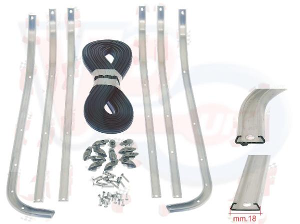 VE14018 FOOTBOARD STRIP KIT - VESPA GT-GTR-SPRINT-RALLY-SS180. A quality reproduction floorboard strip set (or floor runner kit) from Italian manufacturers, comes complete with 6 alloy channels, rubber for alloy channels, metal end caps and rivets. Footboard strip sets are not a perfect fit out of the box, they must be tailored to your machine. Most often they come with a pre bent curve, this is always bent a bit early and during fitting the channel will be bent down as it is riveted to match the curve of the legshields, some models may also require a slight twist on the front end of the channel, so the channel sits flush to the legshields. There are many videos on YouTube covering this subject and the various techniques used can be learned before undertaking the task of fitting.
