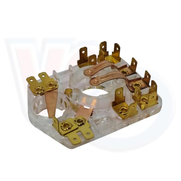 VE16147 BULBHOLDER FOR HEADLAMP - VESPA 50 SPECIAL. Unlike our European neighbours, the UK version of the 50 Special came with a main/dip headlamp and used the BA20D Bosch cap headlamp bulbs, this bulbholder (or Bulb socket) is for the UK models, and takes a BA20D headlamp bulb and a BA15S side light bulb, and also functions as a junction box to connect the wires from the loom to the wires from the light switch.