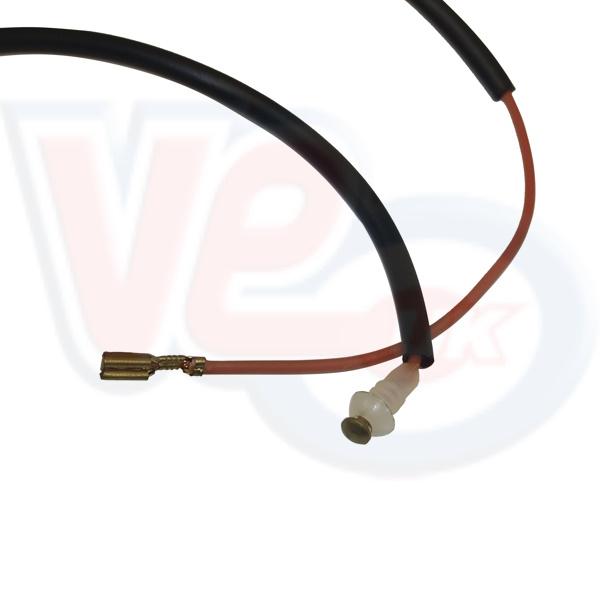 VE16101 INDICATOR WIRE FOR SIDE PANEL - VESPA PX-T5 - LML. Side panel wire which runs from the panel pin round the side panel to the indicator lamp, with insulated plastic end for side panel pin, and small spade terminal to connect to the indicator lamp. Cross reference Piaggio Vespa 194004.