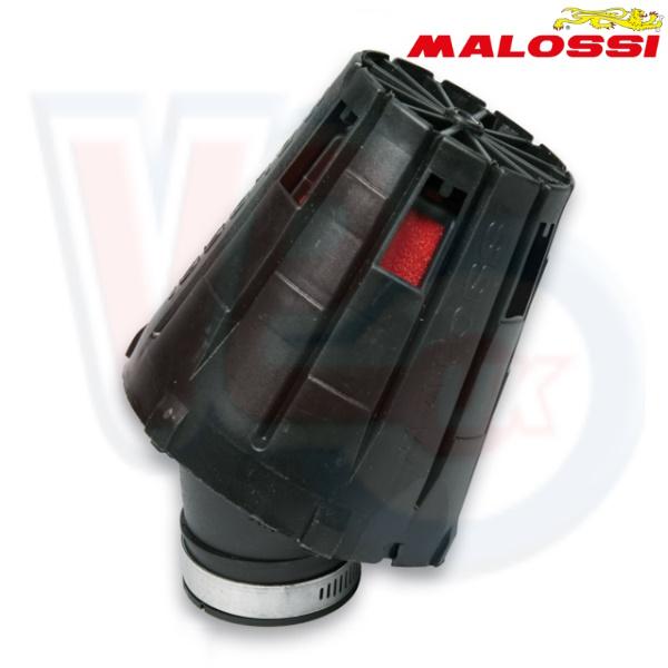 VM049424-C MALOSSI 41mm E5 BLACK ANGLED SPORTS AIR FILTER with COVER - DELLORTO PHVB. .E5 air filter with filtering component made of red expanded polyurethane for 50 cc scooters. E5 is available in a range of sizes that fit any CARBURETTOR from à 12 to à 30. Shape: sleek, aerodynamic and compact. Construction: Web structure, lightweight and removable. Filtering component made of expanded polyurethane with open cells, self extinguishing and with a big accumulation pipes and surfaces have been expressly calculated. E5 is pre-eminently an air-horn filter therefore it has two special qualities: the one of air intake (Venturi) and the one of air filter. .Cross reference Malossi 04 9424.C0.