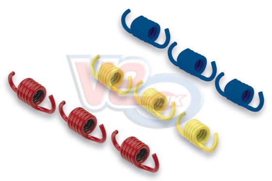 VX294202 MALOSSI UPRATED CLUTCH SPRING SET for ORIGINAL CLUTCHES - PEUGEOT 50 - SYM 50. On automatic motors the clutch often engages at low revs, which is often where the motor is not producing its best power, stronger spring will hold the clutch shoes in till the motor is revving a bit more, meaning there will be more power to pull away with. Malossi supply their springs in packs of 3 strengths, identified by different colours, all 3 colours are stronger than standard so you can set the motor to how you like it. Cross reference Malossi 2914202.