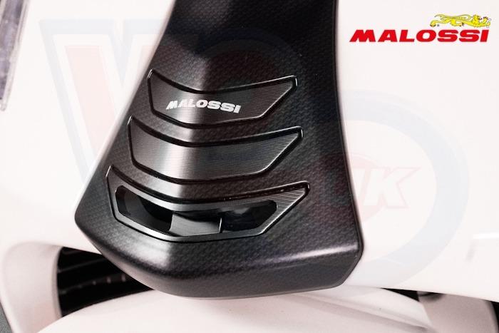 VM8120499BB MALOSSI CNC ALUMINIUM HORN COVER GRILLE - BLACK - VESPA GTS. The Vespa horn cover is made from lightweight CNC-machined anodised aluminium, featuring three overlapping fins and the Malossi logo. It is a detail that speaks for itself, instantly showing that this Vespa is a different story altogether, wearing a Malossi signature tie. Mount it delicately and clean it, avoiding alkaline products. Available in black, red and gold.