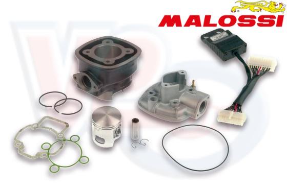 This big bore cylinder kit from Malossi is 70cc and fits scooters with the Piaggio fuel injcected 2 stroke liquid cooled PureJet motor, it gives best power in the mid rev range, and it ideal for those looking for more torque to climb hills and accelarate faster, it has a 47mm bore size, and it is made from cast iron and comes supplied with a piston kit, cylinder head and top end gasket set, and a new electronic box to adjust the fuelling. Technical features - Material: wear-proof, laminate special cast iron - Recalculated heat exchange surfaces - NC machine-tool machining - Transfer and exhaust designed for maximum efficiency - Lightened and reinforced, special aluminium alloy pistons with a high silicon content - Optimised compression ratio - Very high turbulence combustion chamber. Malossi part number 3112044 NOTICE: FOR THE PROPER WORKING OF THE KIT IT IS ABSOLUTELY NECESSARY TO USE THE TC UNIT (ECU) SUPPLIED IN THE KIT AND TO SUBSTITUTE THE PRIMARY GEARS WITH THE HTQ MALOSSI ONE, TOGETHER WITH THE ORIGINAL EXHAUST SYSTEM OR THE MALOSSI ONE.