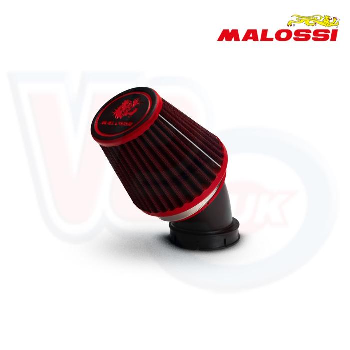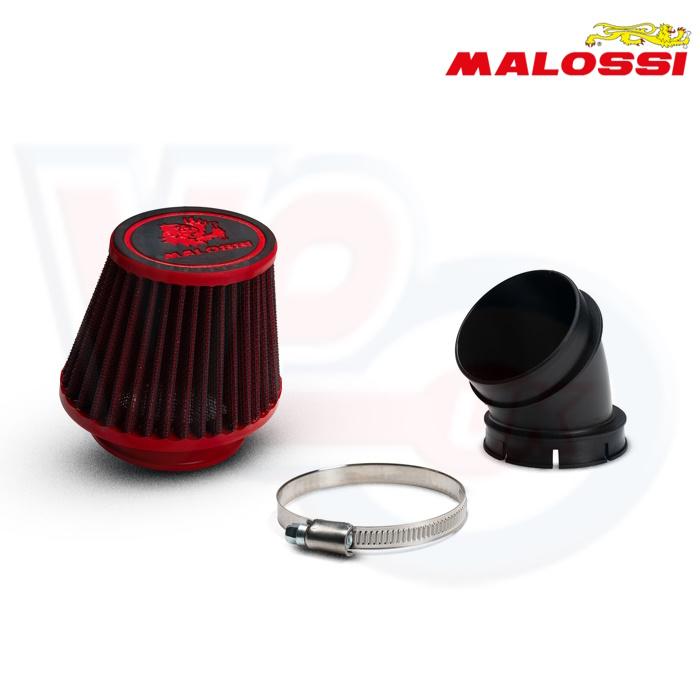 VM040126 MALOSSI E18 AIR FILTER KIT - ITALJET DRAGSTER 125, 200, 300 4t (also fits other scooters with the 32mm Diameter Magneti Marelli throttle body). .Air filter measures 95mm Long and is 55/60mm where is connects. With the introduction of the sport air filters E18, Malossi has widened its range of products with a new range of highly performing and resistant air filter. The E18 filters are champions as for versatility: as a matter of fact, although they are specifically designed for four-stroke engines, they are incredibly efficient even if applied to two-stroke engines. They are available in two different sizes (95 and 125), they may be adapted to any type of vehicle, owing to the oval tapered structure, able to facilitate their correct positioning and to the various types of connections available, snap-fit or threaded. Implemented with cotton weaves, featuring long greased multilayer fibres, these filters have a perfect structure to keep any impurity out of the engine. Externally and internally, the fibres are protected by an aluminium mesh, which acts as a flame break, assuring maximum safety and, at the same time, the perfect direct air flow. .Cross reference Malossi 0420126.