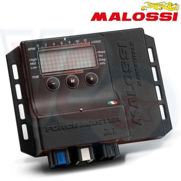 0655020434 MALOSSI FORCEMASTER 2.1 ECU (FUEL ADJUSTMENT UNIT) - CF MOTO 125 NK Euro 5+ 2025 on. The Force Master 2.1 control unit arrives with a completely updated design that makes configuration far more intuitive. Malossi has always prioritised ergonomics and ease of use, and this latest version reflects that philosophy perfectly. Itâs a modern, capable and high-performing unit equipped with interfaces for both K and CAN communication lines, a redesigned user interface and a new capacitive ignition input. As a result, Force Master 2.1 becomes an ideal tool for managing vehicle performance, removing functional limitations and allowing the engine to exceed the constraints of the original rev limiter. Its technical capabilities include carburation adjustment across LOW, MID and HIGH ranges with a tolerance of + or -14%, an increased RPM limiter of +800rpm, and reliable operation between -30c and +80c. The unit functions on a minimum voltage of +7V and a maximum of +16V, with an average current draw of less than 200mA. Built to IP65 environmental protection standards, it offers four selectable maps: the first designed for an original exhaust system paired with a Malossi 166cc cylinder, original head, original camshaft and original filter, while the remaining three operate in bypass mode with zeroed adjustment values. When paired with the O2 controller, the Force Master becomes a complete carburetion management system. Together, the two devices provide full control across the entire operating range, ensuring every stage of tuning or modification proposed by Malossi is precisely managed, monitored and optimised. Cross reference Malossi 5520434. Special order part, allow 5 to 7 days for delivery.