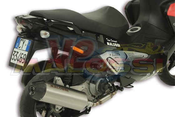 The Malossi RX exhaust systems for maxi scooters are available for scooters 125cc up to 400 cc. They are made from stainless steel, laser etched with the Malossi name, and finished off with end cap made from real carbon fibre, making the Malossi RX exhaust up to 3.5kg lighter than some standard exhausts. Internal components and DB killer were completely re-designed in order to achieve the best performance, yet keeping the noise within limits set by the law three silent-blocks allow to reduce vibrations, while a shaped plate and three fasteners on the silencer ensure an easy and quick assembly. A race DB killer VM324843 is available separately.