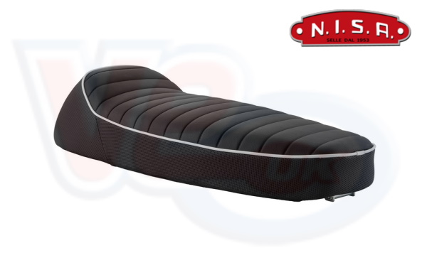 NISA SELLA BIPOSTO SPORTS SEAT – BLACK with WHITE PIPING – VESPA T5 Mark 1