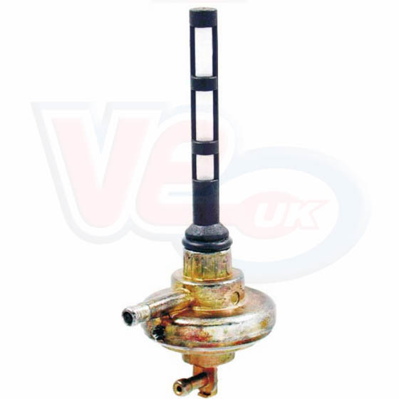 VS18655 VACUUM PETROL TAP FOR PLASTIC TANKS - VESPA ET, LX, GT, GTS. Standard replacement vacuum fuel tap, suitable for use with unleaded ethanol fuels up to E10 (10% ethanol), equivalent to Piaggio part number575320, 575321, 674594.