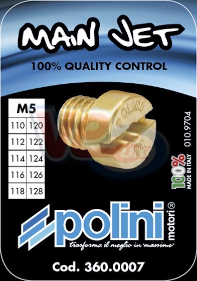 | MAIN JETS | DELLORTO and SPACO MAIN JETS | POLINI 10 JET BOX - DELLORTO 5mm 1486 - SIZES 110 TO 128 |