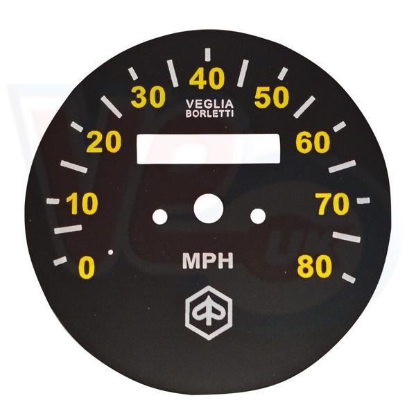 VE12202-F REPLACEMENT SPEEDOMETER FACE 0-80mph - VESPA PX MARK 1 1978-84.