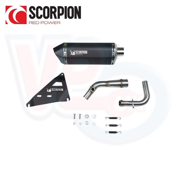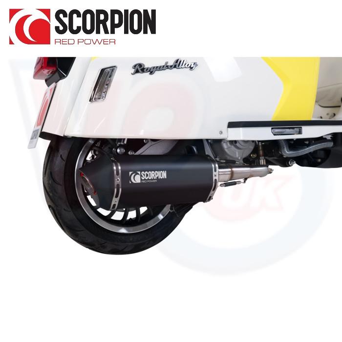 VZ83264-BK SCORPION SERKET BLACK EXHAUST - ROYAL ALLOY GP 125 LC. The Scorpion Serket exhaust for the Royal Alloy 300 liquid cooled models, is handmade in Great Britain by Scorpion at their state-of-the-art manufacturing facilities, it offers superb style and performance along with Scorpions lifetime guarantee (see enclosed documentation for terms and conditions). Supplied with a full downpipe and all the parts needed to replace the standard exhaust. Road Legal with a removable DB Killer (not road legal with DB killer removed). Available in 2 colour combinations: Stainless Steel Muffler with stainless steel down pipe, or Ceramic Black Muffler with stainless steel down pipe.