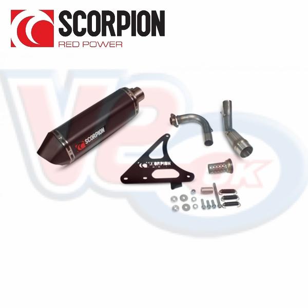 VZ83282-BK SCORPION SERKET CERAMIC BLACK FULL EXHAUST SYSTEM - FITS SCOMADI TL 125 EURO 3 MODELS. .The Scorpion Serket exhaust is their newest product for scooters, it is handmade in Great Britain by Scorpion at their state-of-the-art manufacturing facilities from stainless steel and ceramic black coated stainless steel, it offers superb style and performance along with Scorpions lifetime guarantee (see enclosed documentation for terms and conditions). Supplied with a full downpipe and all the parts needed to replace the standard exhaust. Road Legal with a removable DB Killer (not road legal with DB killer removed). Fits Euro 3 models with a Carburettor.