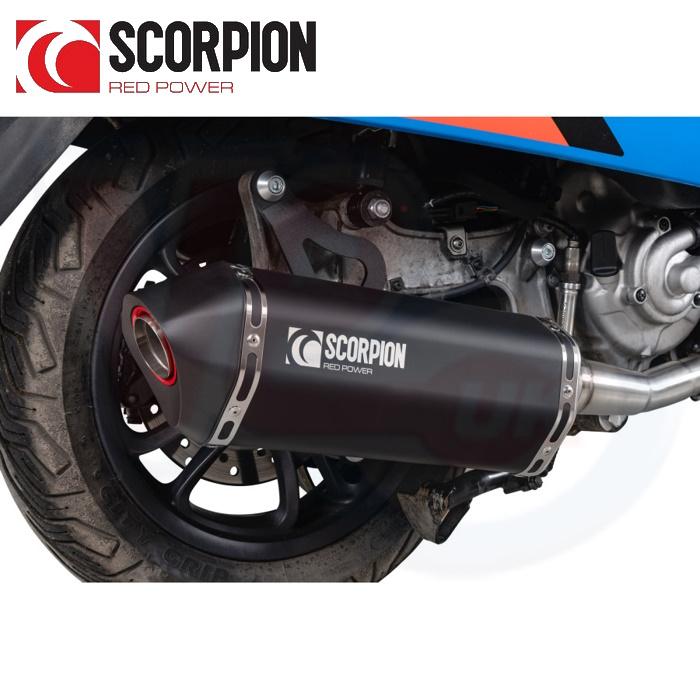 VZ83262-BK SCORPION SERKET CERAMIC BLACK SLIP ON EXHAUST SYSTEM - VESPA GTS 310 Euro 5+ 2025 on. .The Scorpion Serket exhaust for the Vespa GTS, it is handmade in Great Britain by Scorpion at their state-of-the-art manufacturing facilities, it offers superb style and performance along with Scorpions lifetime guarantee (see enclosed documentation for terms and conditions). Supplied with a link pipe and all the parts needed to replace the standard exhaust. Road Legal with a removable DB Killer (not road legal with DB killer removed). To get the best performance from this product it is recommended to use it in conjunction with the Malossi O2 controller. Available in 2 colour combinations: Stainless Steel Muffler with stainless steel link pipe, or Ceramic Black Muffler with stainless steel link pipe,