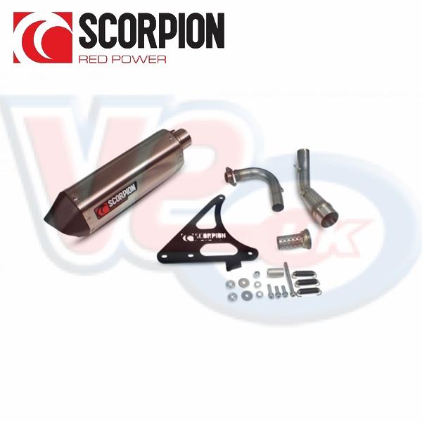 VZ83282 SCORPION SERKET STAINLESS STEEL FULL EXHAUST SYSTEM - SCOMADI TL125 EURO 3. .The Scorpion Serket exhaust is their newest product for scooters, it is handmade in Great Britain by Scorpion at their state-of-the-art manufacturing facilities from stainless steel and ceramic black coated stainless steel, it offers superb style and performance along with Scorpions lifetime guarantee (see enclosed documentation for terms and conditions). Supplied with a full downpipe and all the parts needed to replace the standard exhaust. Road Legal with a removable DB Killer (not road legal with DB killer removed). Fits Euro 3 models with a Carburettor.