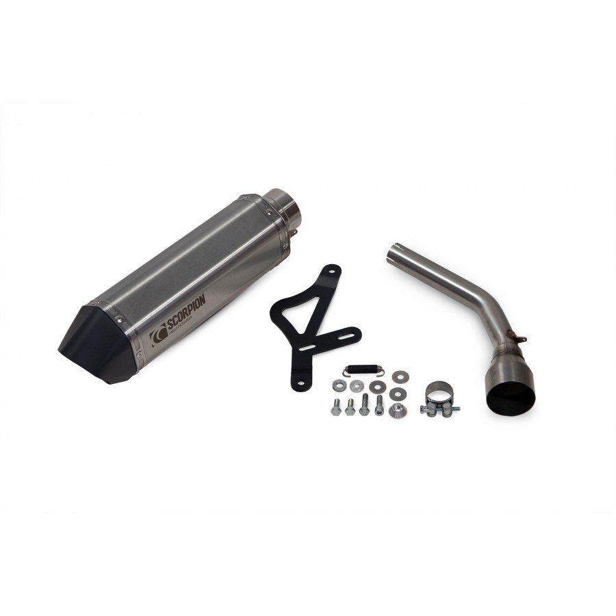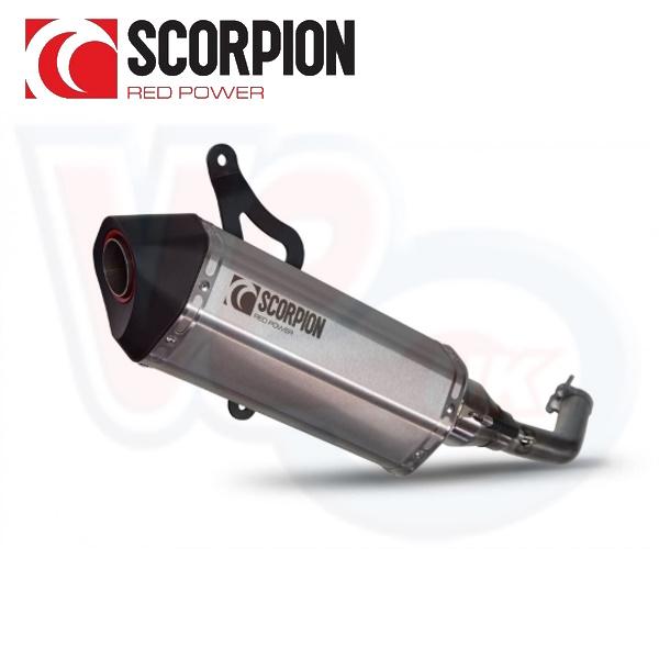 VZ83256 SCORPION SERKET STAINLESS STEEL FULL EXHAUST SYSTEM - VESPA GTS 300 HPE Euro 4 2019-2020. .The Scorpion Serket exhaust for the Vespa GTS, it is handmade in Great Britain by Scorpion at their state-of-the-art manufacturing facilities, it offers superb style and performance along with Scorpions lifetime guarantee (see enclosed documentation for terms and conditions). Supplied with a full downpipe and all the parts needed to replace the standard exhaust. Road Legal with a removable DB Killer (not road legal with DB killer removed). To get the best performance from this product it is recommended to use it in conjunction with the Malossi O2 controller. Available in 2 colour combinations: Stainless Steel Muffler with stainless steel link pipe, or Ceramic Black Muffler with stainless steel link pipe,