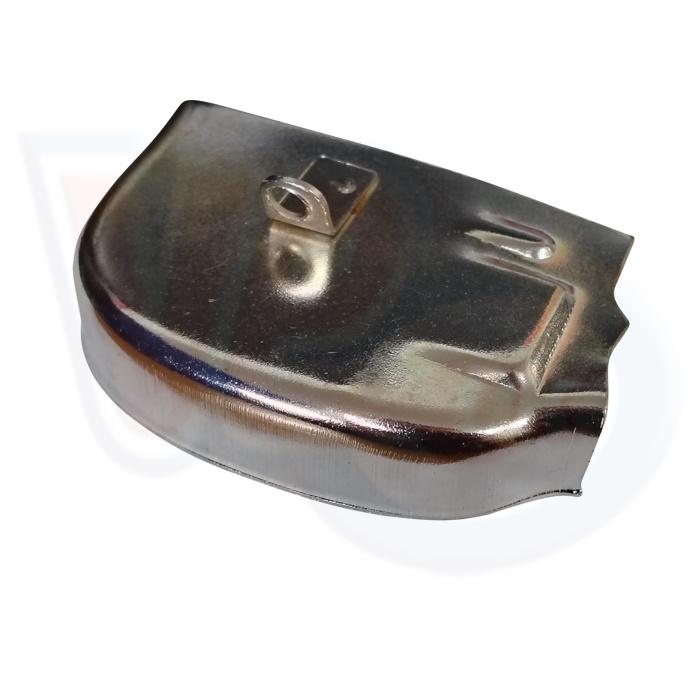 VE11097 SELECTOR BOX COVER - VESPA T5, T5 CLASSIC. The wider crank on the T5 means the fan cover sits further out than on a PX, so the selector box cover which links to the lower fan cover screw is different on a T5, on the T5 the bracket is about 25mm from the back edge of the selector box cover. Cross reference 235538. Fitment VESPA 125 - T5 125 1986-1990 VESPA 125 - T5 125 CLASSIC 1991-2000
