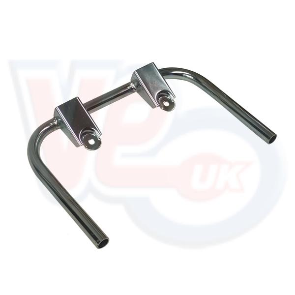 VE14120-Z Centre stand in silver zinc plated finish - PK. Italian made 22mm centre stand with a zinc plated, flat silver finish. Fitment VESPA 50 - PK50FL2 - PK50HP2 VESPA 50 - PK50S VESPA 50 - PK50XL VESPA 100 - PK100S VESPA 100 - PK100XL VESPA 125 - P125ETS VESPA 125 - PK125S