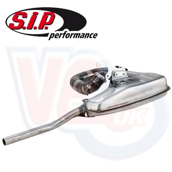 LE13254-RB SIP RACING CLUBSPORT EXHAUST for AF RB CYLINDERS - LAMBRETTA SERIES 1-2-3. This only fits motors with RB cylinders. The 'Clubsport' box exhaust takes the concept of the common Clubman system to the next level. Although the performance delivery as just as reassuring, torquey and as harmonic as the original they can facilitate a peak power value similar to those produced by full-blown racing expansion chamber exhausts. The Clubsport harmonises well with set ups road tuned for everyday use. Despite this, a relaxed commute and cool urban cruising can also be achieved even when it is combined with a cylinder such as the Monza or TS1. Alongside all this, the designers of the Clubsport also did their homework when it comes to exact production dimensions and fitting. Their exhaust is precisely constructed and is very easy to mount, without any mechanical stress points. The individually welded segments of the visible manifold also ensure a decent sporting appearance. Cross reference Sip 22088800.