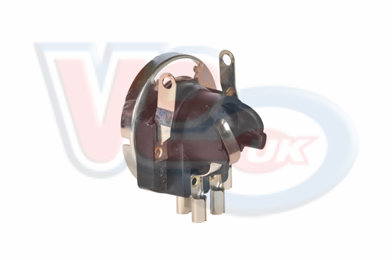 A perfect reproduction of the CEV type bulbholder, for use with BA20d Bosch type headlamp bulb and a festoon type side light bulb, it has 4 terminal connections and fits to CEV brand headlamps, equivalent to Innocenti part number15080030.