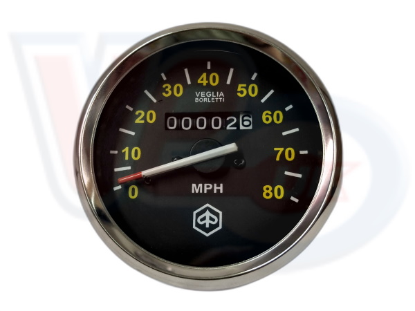 VE12031 SPEEDOMETER - 0-80mph - VESPA PX Mark 1. a reproduction speedo unit with a 0 to 80mph scale like the original speedometer.