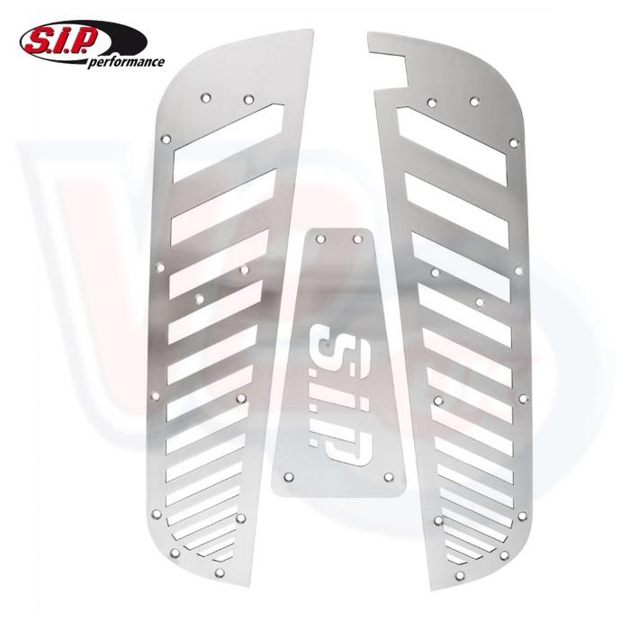 VE14174-SS2 STAINLESS STEEL SIP FLOOR PLATES - VESPA PX-T5-LML. SIP stainless steel tread plate set - custom look in 90s racer style with 3D effect for Vespa PX. The SIP stainless steel footboard set has been an integral part of the silver SIP PX Customs for years and characterizes the look of many PX racers in 90s style. The individual Plates are distanced from the Footboards by stainless steel bushes, creating a striking 3D effect that significantly enhances the look of the floor plate and gives the scooter a clear custom character. A laser-cut SIP Scootershop logo in the Centre Piece adds an additional accent. Made from high-quality, absolutely rust-free stainless steel, the set is available with either a glossy or brushed finish and combines robust everyday practicality with a sophisticated look. Cross reference SIP 50290000.
