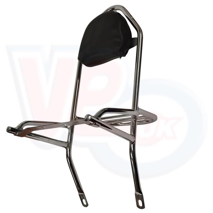 VE30503 VE ACTIF CHROME 3-IN-1 - BACKREST + GRAB HANDLES + FLAT CARRIER - LML-VESPA PX-T5 Classic-T5 Mark 1. The VE Actif 3 in 1 combines a backrest with a rear carrier and grab rails, made in Italy to our exclusive design this can be fitted to both the Vespa PX, T5 Classic and also the original T5, it can be fitted with almost all the aftermarket style seats, Yankee, King and Queen etc. so there wont be a conflict with the rack and your seat (this will fit an original T5 with the Pole Position Giuliari seat) Piaggio in their wisdom moved the 4 number plate mounting holes on later Vespa models, this will fit both 100mm and 145mm hole spacings without the need for any drilling.