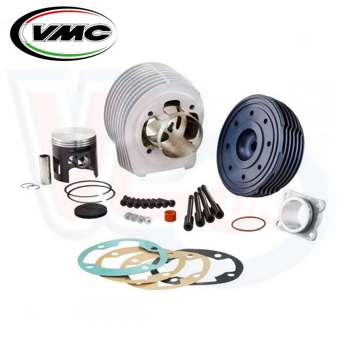 VMC00707 VMC CRONO 187cc ALLOY CYLINDER KIT - VESPA PX125-150 and older 3 PORT LARGE FRAME VESPA MODELS - LML 125 2t. .VMC CRONO 187cc 63mm bore and 60mm stroke thermal group, PLEASE NOTE This kit Requires 60 stroke crankshaft with 110 connecting rod. Aluminum cylinder with Nikasil coating by Gilardoni. Entirely produced in Italy, this VMC kit is the result of a constant commitment in the search for cutting-edge technical solutions and top-quality materials to satisfy the needs of the most demanding Vespa riders. Bore diameter 63mm, 7 transfers, boosted exhaust port, main port plus 2 smaller boost ports, Mounted with 60mm stroke crankshafts and 110 connecting rod. Transfer port timing 120 degrees, exhaust port timing 178 degrees. Meteor double-ring piston with biconical pin and flat crown. CNC machined aluminum head with specific fin shape for better cooling, with recessed squish band and 8 fixing points. Central spark plug position in the combustion chamber, for better combustion. Complete paper cylinder gasket kit with various thicknesses for the cylinder base. Exhaust manifold in zinc-plated steel screwed to the cylinder with Viton O-ring seal. We recommend combining this cylinder with a reed valve intake to maximize performance and driving pleasure.